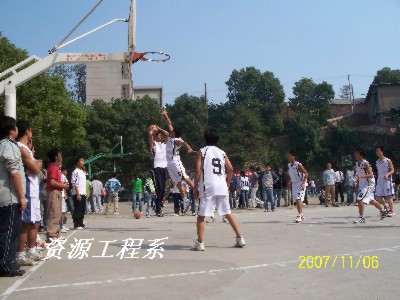 2007年11月22日,资源工程系第三届“迎新杯”篮球联赛胜利闭幕。本届篮球赛由体育部承办,历时一个月,在学团各部门及协会的鼎立协助下,比赛圆满成功。来自22个班级的队伍经过激烈角逐产生了前6强,三分球大赛中产生了三名优秀的“三分投手”。