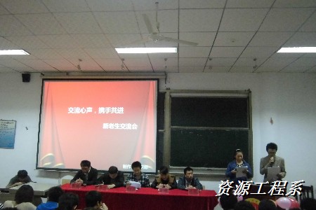 为了让新生们更快的适应大学生活,树立正确的人生观,世界观、价值观。资源工程系于11月7日晚,在三教多媒体一举行了“交流心声 携手共进”新老生交流会,参加本次交流会的嘉宾有:第七届团总支学生会主席胡俊峰,副主席蒋群、王锟,副书记彭欢,组织部部长成鹏,以及新一届学生会全体成员。