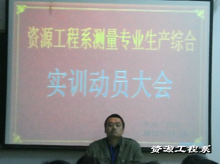 为探索“理实一体化”教学,实行“工学交替”模式,培养高素质技能型型人才。资源系11月9日下午在三教205教室召开了测量专业生产综合实训动员大会,系副书记副主任胡志军,10级辅导员郭赟登老师、以及测量专业相关老师和测量1101班全体成员共同参加了本次动员实训大会。