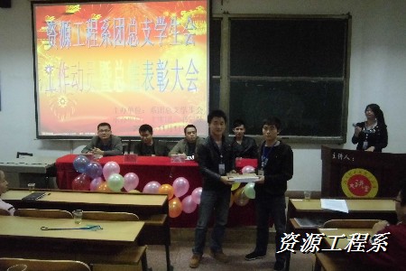 为了进一步树立模范带头作用,加强我系团总支学生会队伍的建设,促使我系团总支学生会更快、更好、更全面的发展。资源系于11月1日,在三教多媒体一隆重举行了“资源系总支学生会工作动员暨总结表彰大会”,出席本次大会的嘉宾有:系副书记、副主任胡志军,团总支书记陈柏舟,10级辅导员郭赟登,学管干事朱礼以及学联、社联、三系主席团成员和我系学生会全体成员200余人共同参加,会议由资源系团总支学生会副书记唐峰主持。