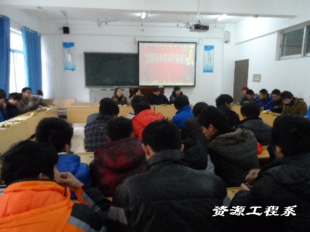 2013年1月6日下午资源工程系外省籍学生交流座谈会在三教209教室举行。资源工程系主任何瑛、副书记副主任胡志军、副主任杨益梅、12级辅导员赵奇、班主任代表陈雄辉、姚琦等老师参加了此次会议。会议由12级辅导员赵奇老师主持。