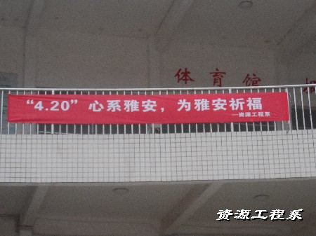 4月20上午8:02,四川省雅安市芦山县发生7.0级地震,造成重大人员伤亡。为响应全国上下如火如荼的救灾援建工作,资源工程系4月24日下午在食堂前坪举行了,“心系雅安,为雅安祈福”募捐活动。