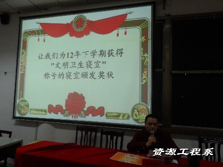 为了规范和完善我系学生宿舍管理制度,营造温馨舒适的学习和生活环境。资源工程系于4月24日晚,在三教多媒体一召开了寝室长会议。与会人员有: 系副书记副主任胡志军、和各寝室代表,会议由朱湘吉主持。
