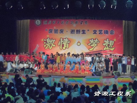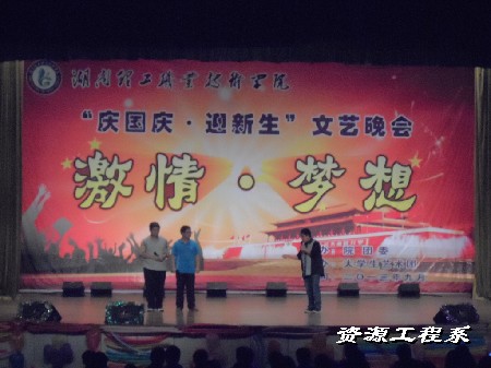 青春的世界充满梦想和希望,整场晚会洋溢着激情、欢快的气氛,充分展现出我院学子昂扬向上的良好精神风貌;同时,也祝愿资源工程的新生在3年之后收获累累硕果,相信湖南理工的明天会更加灿烂辉煌。(资源工程系 陈柏舟 邓中林)