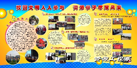为积极响应学院号召,进一步树立和谐文明的校园环境 ,资源工程系全体师生齐心协力、在全院营造创建文明校园,人人参与,人人有责的责任意识,在实训楼大厅创办文明校园专栏。