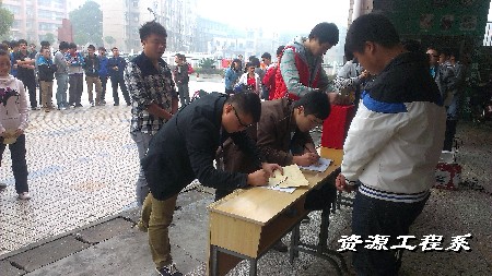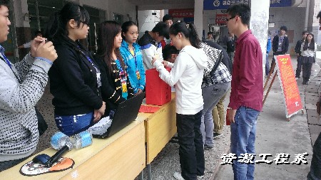 2013年10月30日资源工程系积极组织开展曹光明同学募捐活动正在火热进行,活动现场吸引了三系团总支成员及各班人员代表,希望大家踊跃参与献出自己的爱心,用自己的爱心帮助曹光明对抗病魔,让悬崖上的生命焕发出灿烂的光芒。