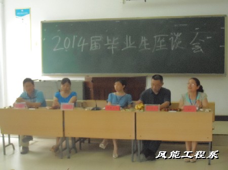 6月19日下午3点,风能工程系在三教207教室召开2014届毕业生座谈会。风能工程系主任何瑛、教学副主任杨益梅、喻训谦老师、周迎春老师、刘石磊老师与11届毕业生学生代表、大二学生代表亲切座谈,会议由教学副主任杨益梅主持。