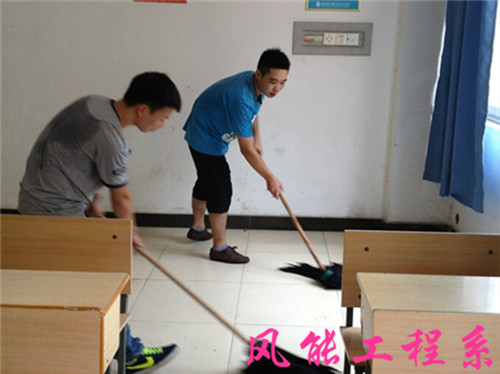 为给2014级新生以及即将来校报道学习的大二、大三同学们提供一个干净舒适的学习环境,迎接即将到来的新学期,8月30日上午,风能工程系团学会组织学生干部和2014级新生助理班主任前往第三教学楼和实训楼打扫卫生、清理杂物,扮靓校园迎接新学期。