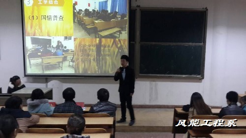 比赛在激烈的进行中,来自三个系部的15名大三年级的参赛选手,纷纷展现出自己的才华。风能工程系的学长学姐们,结合自己平时的学习方法和生活经验,以通俗易懂的表达方式向大家介绍了我系机电一体化、测量工程、机械设计与制造、电气自动化四大专业的特色风格、学习方法以及毕业后的就业方向。听完他们的专业解说,大一、大二的同学们对自己的专业也有了更深的理解,明白了以后的发展方向,对于自己的前途充满了美好憧憬。