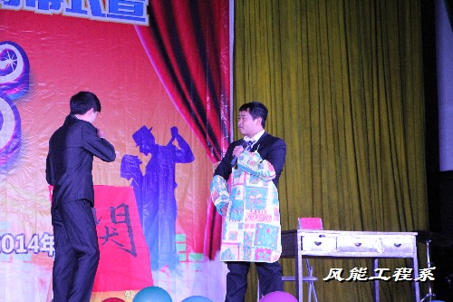 本次第七届社团文化艺术节闭幕式由我院院团委及各学生组织共同参与,不仅加强了各系部社团之间的交流和协作,还推进了和谐校园和文化校园的建设,总结回顾本届社团文化艺术节,学院不仅展示了在此次文化节中涌现出的优秀成果和优秀选手,并对在此次文化艺术节中表现优异的学生进行了表彰。风能工程系机电1141班周斌机、童文机,测量1141班沈学舜、电气1141班阳鑫颖表演的小品“招聘”获得全院第一名。