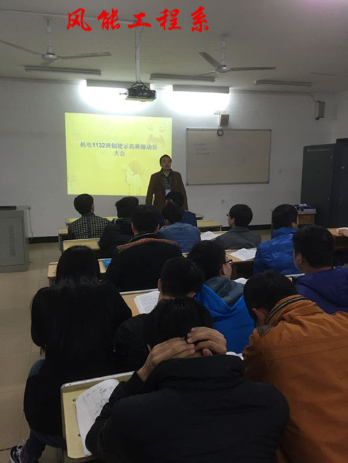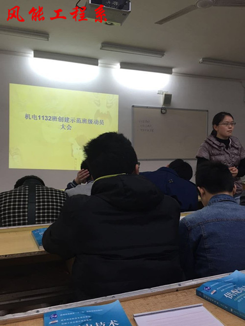 为更好地体现班级的精神风貌,顺利的融入到班集体的温暖大家庭中,力创2015年度示范班级,风能工程系机电1132班于3月26日召开创建示范班级动员大会。系副书记胡志军、辅导员喻莎莎、班主任卢永辉老师及机电1132班全体同学参加了本次大会。会议由班主任卢永辉老师主持。