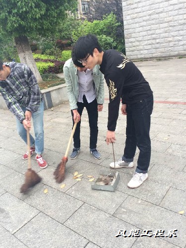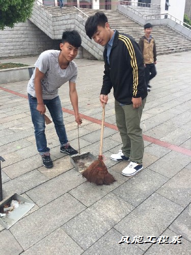 本次志愿者活动由班长韩礼发起,全班同学分组行动、分片做好清洁工作,有的负责清扫操场,有的请带图书馆前坪,还有的打扫三教学楼片区的卫生。同学们热情的、有条不紊的做好各自清扫区域的卫生,活动进行到后阶段,看着经过自己辛勤劳动后的干净、整洁的校园,大家露出了会心的微笑。有的同学已疲惫不堪,但没有一个说放弃,大家圆满的完成了自己所负责那部分区域。