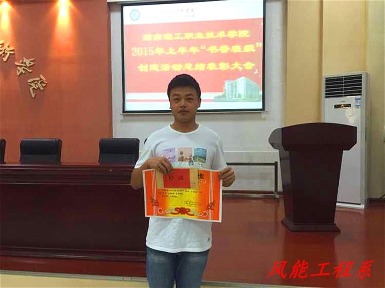 湖南理工职业技术学院于2015年9月29日下午3点,在图书馆报告厅举行了2014-2015年学年度“书香班级”表彰大会。风能工程系机电1143班在本次活动中喜获第二名。