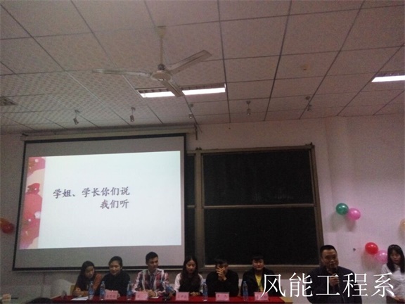 为了让新生更进一步了解大学生活,掌握大学的学习规律,能很好处理工作、学习、生活之间的关系,新老生欢聚一堂,开怀畅聊。大会开始,主持人介绍会议流程后,由第十届风能工程系主席团副书记肖尹焱发言,她说道“今后新生在工作中要少说、多做、多看、多想。”然后新生代表也积极上台发言,说道“以后新生要积极、主动、虚心向老生学习,要不耻下问。”最后风能工程系党总支副书记胡志军老师对新老生代表发言作出总结,胡书记强调“老生要把好的,积极向上的学习和工作经验传承下去,新生要积极学习,努力把学习和工作任务圆满完成。”话音刚落,主持就宣布大会进入问答环节,新生带着疑惑积极想老生问有关学习、工作、生活疑题,都得到老生热情而又完美的回答。