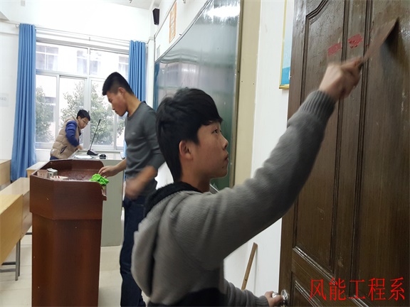 为了提高大学生的环境保护意识,给同学们营造良好的学习、生活环境。2015年11月28日星期六下午两点半,风能工程系志愿部组织一百余名系志愿者参加“教室清扫”志愿活动。 志愿者们在志愿部的带领下,用抹布、扫把、铲子等工具全面打扫教室卫生。特别是清理地面上的污渍及口香糖粘黏物,扫除教室墙面上小纸片和杂物,清除、整理卫生角、讲台上的粉尘杂物,擦洗黑板、玻璃窗台和墙脚的污渍。教室的每个角落都能看到志愿者们劳动的身影,到处呈现的都是积极劳动的景象。在大家的努力下,每一个教室都焕然一新。 本次活动志愿者们用实际行动来诠释“爱护环境、人人有责”的精神。通过活动的开展不仅美化了我院校园环境,还提高了同学们的环保意识。 (宣传部 图文/吴宏波 编辑/刘婵)