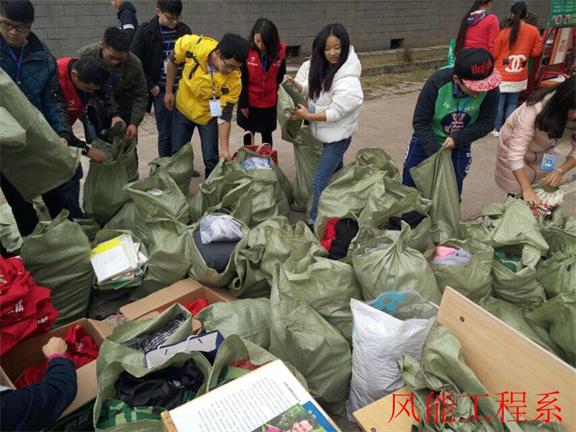 为了帮助贫困地区的学生温暖过冬,2015年12月7日星期一风能工程系志愿部参加院青年志愿者服务中心举办的“衣物、书籍募捐”活动。