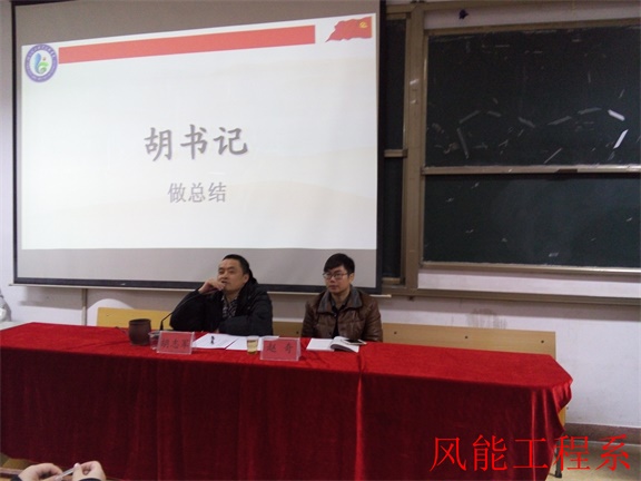 2105年12月22日晚上19:30,风能工程系在3教110教室隆重举行"纪律月"表彰大会,莅临本次大会的领导老师有风能工程系党总支副书记胡志军老师、辅导员赵奇老师;另外,风能工程系学生会主席陈昶露、副主席孙道波、陈瑶、鄂宝权、廉鑫,以及各部门、各班代表参加此次表彰大会。