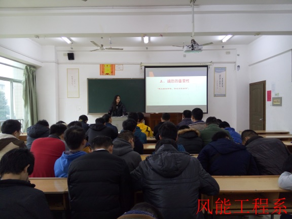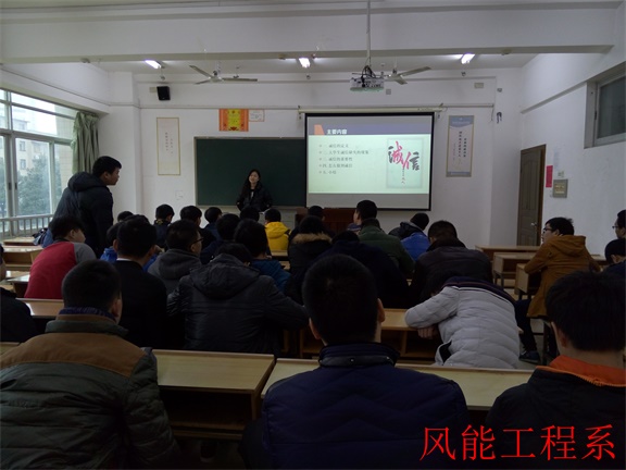 为加强同学们思想道德建设,树立诚信之风,建设诚信班级,201616日上午11:00 风能工程系机电1153班在3206教室举行诚信主题班会。参加此次班会的有班主任刘婵老师和机电1153班全体同学。班会由刘婵老师主持。