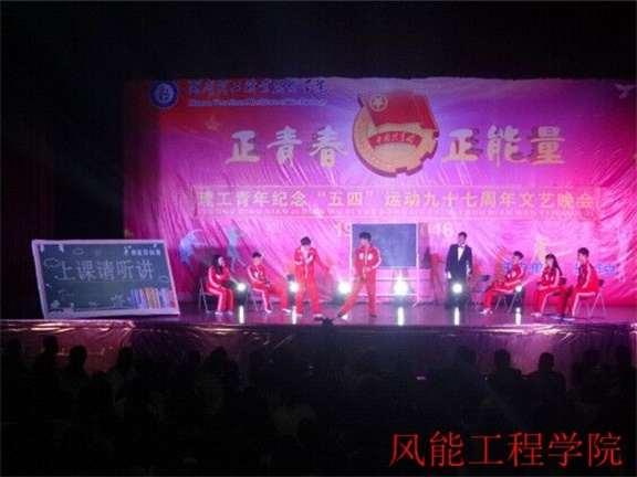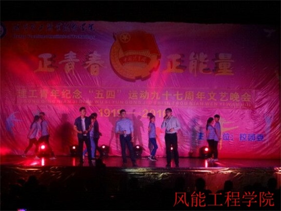 首先活动在主持人梁舒月和孙奥的宣布宣布下正式拉开帷幕。一开场,校园吉他协会为大家献唱《奔跑》、《倔强》就令在场的观众为之沸腾,他们踏着青春的鼓点,唱出心中的渴望,如一缕清风送入台下同学的心田,激励着我校青年奋发的精神。风能工程学院精心编排《上课请听讲》小品以幽默搞笑的形式展现学生上课的不良现象,令同学们感受到了上课认真听讲的重要性;另外,郭赟登、兰俊才、代增远老师演唱的歌曲《光阴的故事》,唱出了对往事的怀念,也希望了同学们珍惜青春,不留遗憾。晚会内容丰富,形式多样,有舞蹈、合唱和朗诵等,获得了校领导与同学们的一致点赞。最后,五四晚会在热烈的掌声中落下了帷幕。