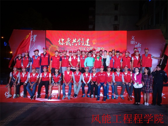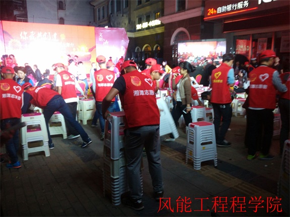 2016年10月10日晚上19:30 ,湘潭市岳塘区曙光社区隆重举行 “你我共创建”文明大舞台主题活动。为提高我院学生对创建文明城市的认识,以及用实际行动为创建文明城市贡献自己力量,风能工程学院志愿部部长唐舒、副部长谢琛积极组织风能工程学院志愿者们参加此次活动。