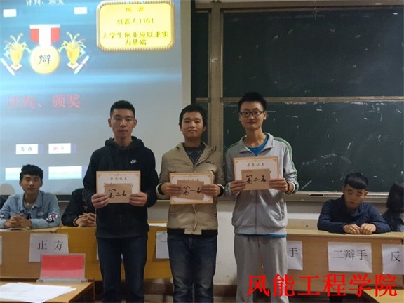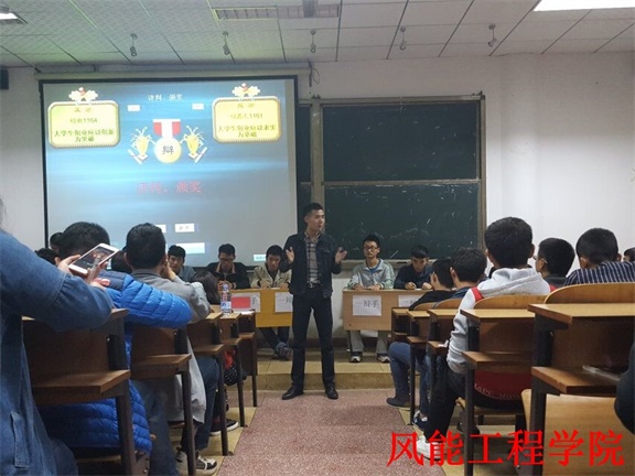 为了丰富大学课余生活,活跃校园文化,风能工程学院于10月25日晚19:30分在三教学楼110教室举行了以“大学生创业应以创新为突破还是以求实为基础”为主题的辩论赛活动,出席本次辩论赛决赛的嘉宾有风能工程学院辅导员郭赟登、吴雅婷老师,风能工程学院学生会主席团成员以及参加辩论赛班级全体同学。