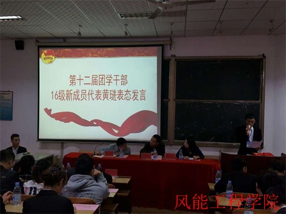2016年10月30日下午14:30,风能工程学院在三教110教室隆重举行了“第十二届团总支学生会换届暨表彰大会”。出席此次会议的有风能工程学院副院长、党总支副书记胡志军老师、学管干事蔡瑞云老师、风能工程学院学生党支部书记朱礼老师、学生团总支书记郭赟登老师、辅导员刘婵老师、赵奇老师、窦雅珺老师、吴雅婷老师;以及校学生会、社团联合会、各二级学院学生会成员。会议由郭赟登老师主持。
