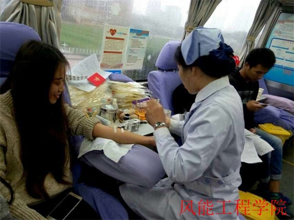 为发扬大学生帮助他人、无私奉献精神,同时提高同学们的社会责任感,构建和谐校园,风能工程学院志愿部部长唐舒,副部长谢琛、佘文漩积极组织院部学生参与到社会医疗救助行列中,并于2016年11月8日在食堂前坪开展为期一天的 “献血献爱心,血浓情更浓”无偿献血志愿活动。
