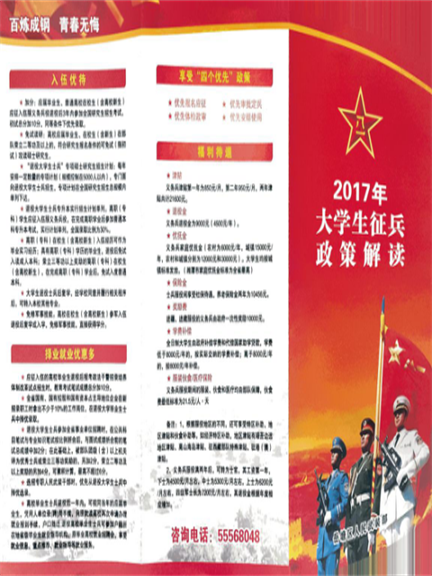 会上,胡志军副书记传达了学校征兵工作会议精神,指出国家高度重视大学生征兵工作,出台了鼓励大学生参军的一系列优惠政策,并对相关优惠政策进行解读。他指出,要全面认识应征入伍的重大意义,国家富强需要一支坚强的高素质的人民军队,而军队建设需要高素质的人才。大学生走入军营,能够改善部队士兵队伍的素质结构,为军队信息化建设注入生机和活力,大学生经过部队这一大熔炉的锤炼,自身的能力和素质也能得到极大的提高。他针对今年的大学生征兵工作提出明确要求:一是做好征兵入伍宣传工作,通过学院网站、微信平台等多种媒体形式宣传,并通过主题班会等方式大力宣传大学生入伍的意义、优惠政策和报名应征流程,让学生了解掌握政策规定;二是认真做好兵役登记工作,确保每一名符合条件的同学上网登记;三是做好信息统计工作,为学生提供优质服务。动员大会后,学院征兵工作全面启动。
