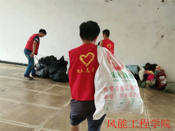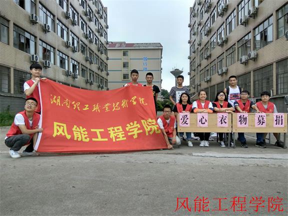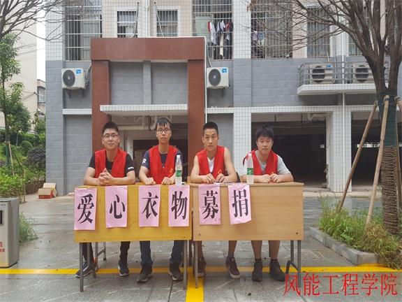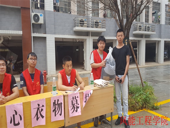 2017年6月13日,风能工程学院志愿部在宿舍楼二栋和五栋之间、 三栋和四栋之间开展了“衣物募捐,爱在行动”主题活动,为贫困地区的人们送去一份温暖。