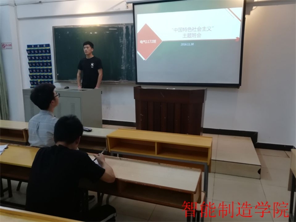 为增强同学们的责任感和使命感,进一步提高同学们对“中国特色社会主义”的认识。2018年5月2日晚,我院电气1172班于明理楼102教室开展“中国特色社会主义”主题班会,班会由班长熊伟志主持,电气1172班全体成员参加。