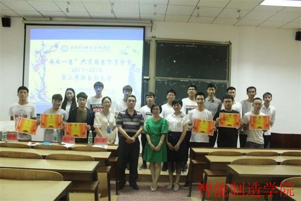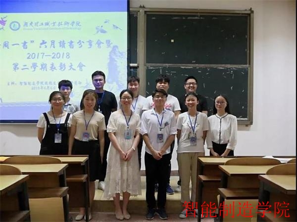 6月6日晚,智能制造学院“每周一书”六月读书分享会暨2017—2018第二学期“四个一”特色读书育人活动表彰大会在明理楼110教室隆重举行。参加本次活动的领导老师有智能制造学院党总支书记、院长何瑛老师,智能制造学院党总支副书记胡志军老师,智能制造学院副院长肖慧慧老师,以及辅导员沈亚老师。