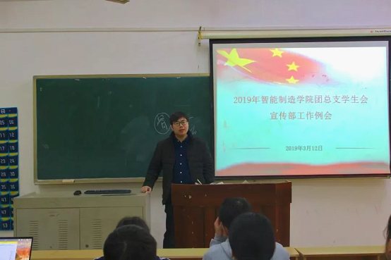 3月12日下午,智能制造学院团总支学生会宣传部召开2019年工作例会,检查近期宣传工作存在的问题,宣传部全体学生干部参加会议。会议由智能制造学院副院长赵奇老师主持。