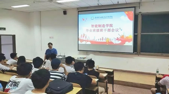 为了更好的开展2019届毕业生工作,智能制造学院于6月11日下午七点在三教210教室召开毕业班班干部工作会。本次会议由智能制造学院副书记、副院长赵奇老师主持,全体大三班级辅导员老师、16级各班班干部参加了本次会议。