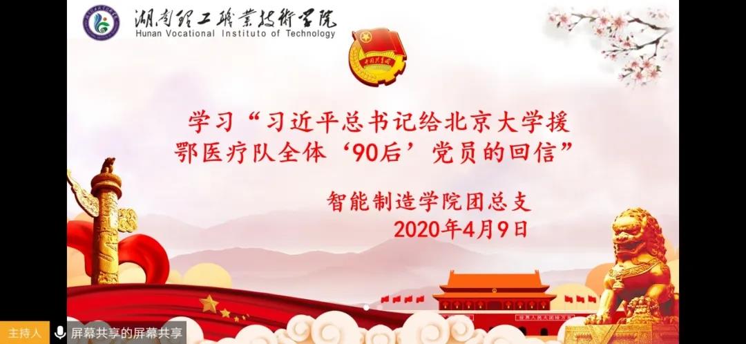为深入学习“习近平给北京大学援鄂医疗队全体‘90后’党员的回信”精神,落实习近平总书记对青年一代的期望和要求。4月9日晚,智能制造团总支学生会通过腾讯会议平台组织开展学习“习近平给北京大学援鄂医疗队全体‘90后’党员的回信”主题会议。参加本次会议的有:智能制造学院团总支书记王栋老师,智能制造学院学工办主任马任兰老师,智能制造学院辅导员杨威老师、游珺淏老师、何芳凝老师以及智能制造学院团总支学生会主席团,各部门主要干部。本次会议由团总支学生会主席高双可同学主持。