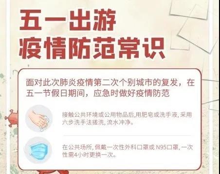 不要出境旅游,也不建议到省外旅游,省内的热门景点建议不列入考虑范围,可以就近在周边景点游览,同时保持适当距离,带口罩,不聚集,就餐实行分餐、用公筷。