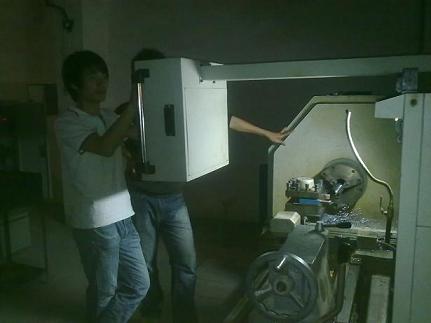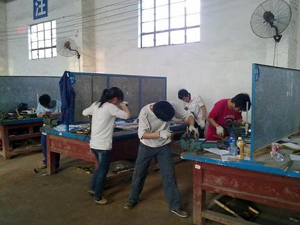 学生们在考场上心态俱佳,人人面带微笑,沉着冷静,有条不紊的在机床旁编写程序,在工作台面上进行工件的锉、磨、锯、量。