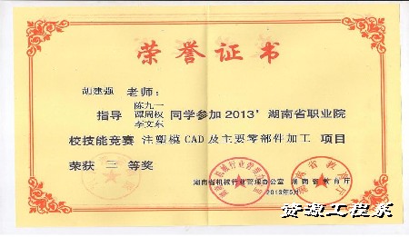 湖南省教育厅主办的2013年湖南省职业院校技能大赛中,我院刘石磊、武志伟老师所带领的测绘测量代表队和文金龙、胡建强老师带领的注塑模CAD与主要零件加工代表队喜获佳绩。