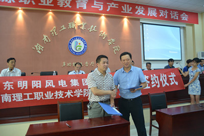 为进一步加强新能源专业与新能源企业之间的深度合作,充分运用新能源企业优势资源及企业对人才培养的相关需求,培养学生的实践操作与动手能力,进而推进学生就业工作,提升学院办学水平,湖南理工职院新能源专业通过深入调研,结合学院实际与企业需求于2015年5月28日,学院新能源专业与广东明阳风电集团、晶科能源科技有限公司签订了校企合作订单培养协议,此次订单培养班的签订,使学院新能源专业校企深度合作办学模式更加凸显,新能源专业订单培养班的成立,积极推进了学院职业教育与新能源产业发展的直接对接,充分发挥了职业院校培养新兴产业技术技能型人才的基础性作用,进一步深化了校企合作,加快了区域产业集聚发展,发挥了新能源技术推广应用及示范引领作用。