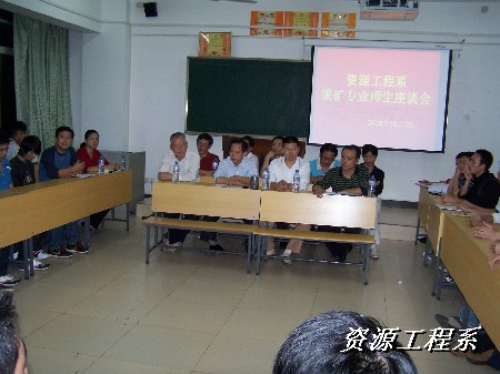 为把握采矿专业发展的方向,培养精湛的技术人才,加快学院重点专业建设步伐,促进学院教学水平评估工作, 10月22日晚,三教308教室灯火通明,我院06级、07级采矿专业师生聚首一堂,召开采矿专业师生座谈会,共同探讨采矿专业建设思路,共同探求采矿人才培养方案。会议由系主任黄靖龙博士主持。座谈会得到学院党委高度重视和相关职能部门的大力支持。出席座谈会的有李兴业院长、主管教学工作的罗先进副院长和人事处贺岳奇处长、学生处符健处长、教务处黄霞春处长、资源工程系党总支书记曾设华老师等。