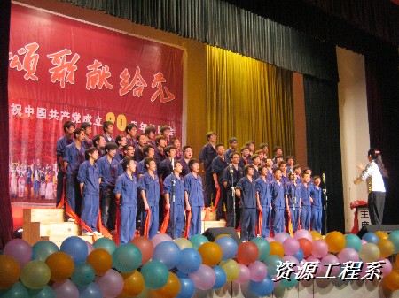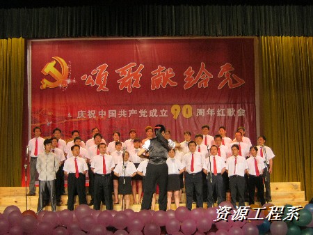 (资源系 谭君供稿)为庆祝共产党成立90周年,2011年6月2日晚7点30学院工会在报告厅隆重举行了“湖南理工职院‘颂歌献给党’红歌会”。 资源系全体教职工及学生代表积极响应学院号召,利用业余时间为红歌会精心准备,以积极向上的精神面貌和青春活力于当晚倾情献唱《众人划桨开大船》、《团结就是力量》、《一根竹竿容易弯》、《解放区的天》,歌颂中国人民在党的领导下,团结一致共创美好的生活的美好画面,引起了当晚的合唱高潮。