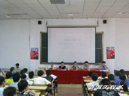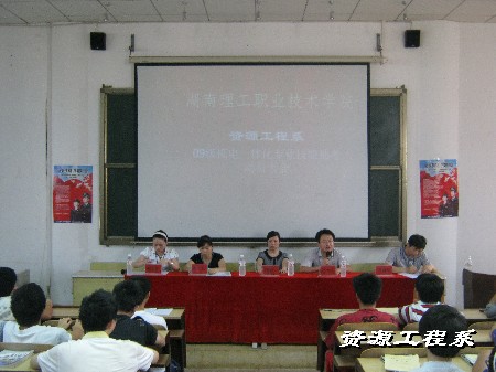 (资源系 李军供稿) 2011年6月22日,下午4点30在三教多媒体四,顺利召开“09级机电一体化技能抽考动员大会”。与会嘉宾:资源工程系副主任兼高级工程师何瑛老师、系副书记副主任李治国老师、机电教研室主任陈雄辉老师、专业带头人周迎春老师及09级机电一体化学生。会议由喻莎莎老师主持。