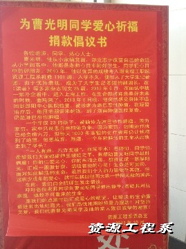 上图为湖南理工职院资源工程系党总支为曹光明同学发起的爱心倡议书