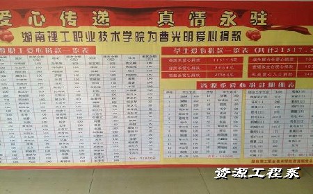 上图为湖南理工职院全体师生为曹光明同学献爱心捐款