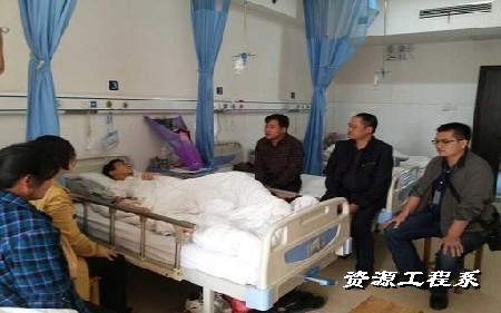 上图为院、系部领导前往邵阳市中心医院看望曹光明递交善款