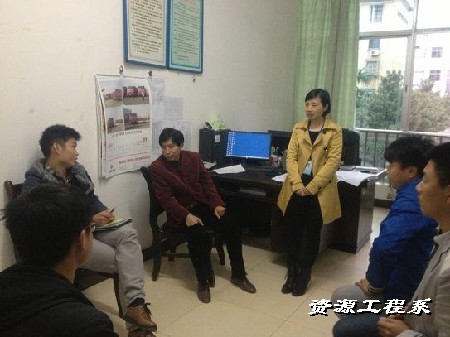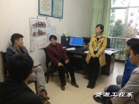 上图为何瑛主任、宁齐元博士给采矿专业部分学生进行评估期间座谈会培训