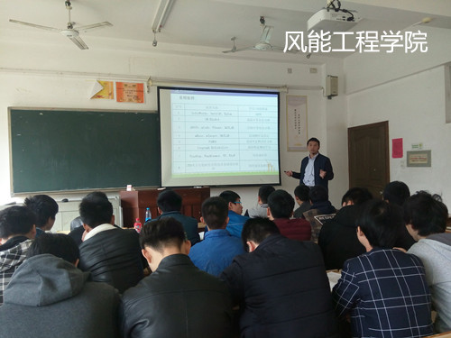 2016年3月31日上午,黄霞春副校长针对风能工程学院风力发电的专业特色,邀请湘电风能有限公司风能研究院研发项目经理刘亚于三教204开展风电基础及现场施工的专题讲座。本次讲座由黄霞春副校长主持,风能工程学院院长兼党总支书记何瑛,副书记胡志军、副院长肖慧慧、所有无教学任务的老师及风电专业学生参加了此次讲座。
