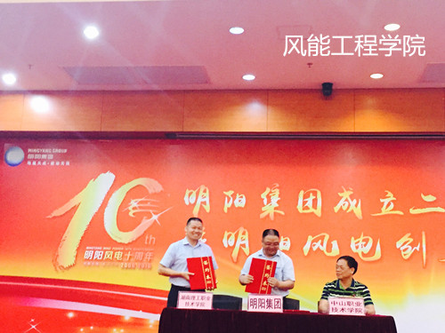 2016年5月20日,湖南理工职业技术学院罗先进校长、风能工程学院何瑛院长携相关专任老师应广东明阳风电产业集团有限公司(简称明阳风电)邀请,出席其于2016年6月1日举办的“明阳集团23周年暨风电集团10周年”、湖南理工职院与明阳风电技术研发与人才培养基地设立、“明阳大学”成立揭牌仪式,并就校企合作事宜进行深度洽谈。
