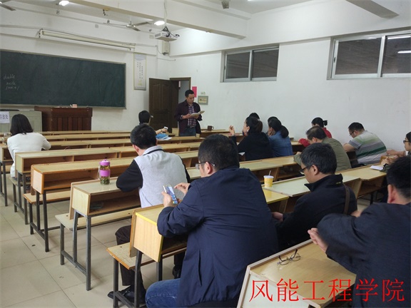 2017年4月25日下午,风能工程学院在3教208召开部门工作会议,安排部署当下工作任务。会议由风能工程学院院长兼党总支书记何瑛主持,副书记胡志军及全体无赛事专兼职教师参加了会议。