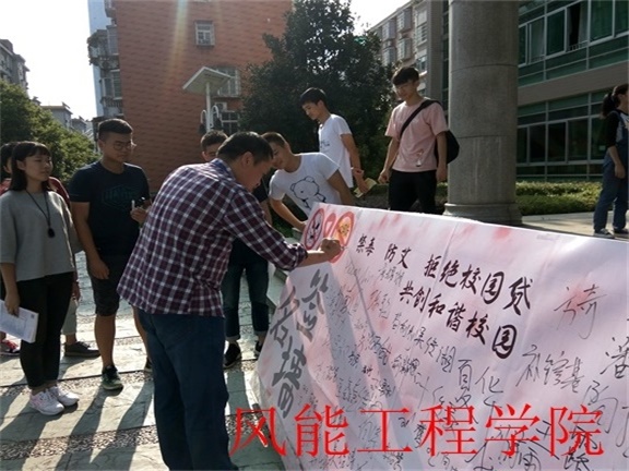 为正确教育引导校园师生对于“禁毒、防艾、拒绝非法校园贷”的认识,增强校园师生防毒、拒毒、防艾和拒绝非法校园贷的意识与能力,2017年9月7日下午,关于“禁毒、防艾、拒绝非法校园贷”的宣传教育活动在明理楼一楼大厅举行。风能工程学院党总支副书记、副院长胡志军携学院学管系统老师、团总支学生会成员以及部分学生代表参加了活动。
