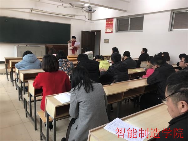 为了加强对考试的管理,严肃考场纪律,端正考风和学风,营造一个公平竞争的环境,确保期末考试的顺利进行,2018年1月15日下午15:30,智能制造学院于明理楼南208教室召开了考务工作会议。会议由智能制造学院院长何瑛主持,教学副院长肖慧慧携全体监考老师及考务工作人员参加了会议。